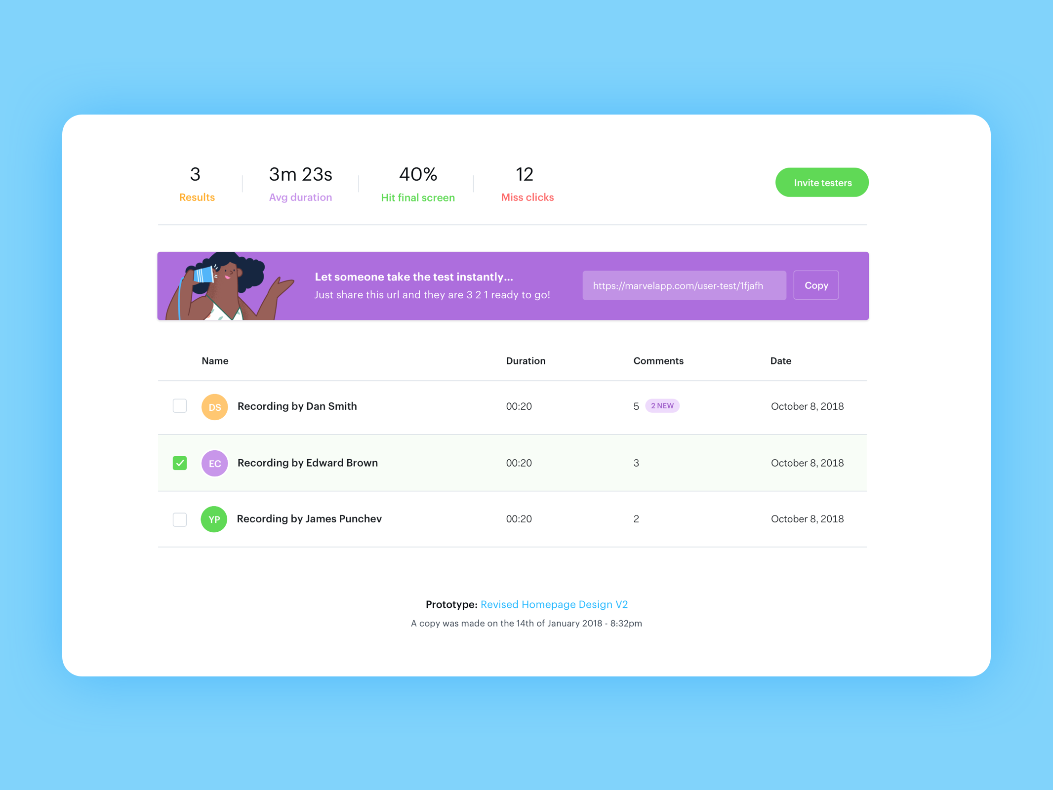 In the lead up to the public release, we'll be sharing some of the core features that we're most excited about and show you how they'll help you bring user testing into your workflow in a simple and scalable way.